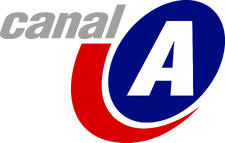 In 1999, the channel was renamed Canal A and the logo for that stage was a sloping blue oval with a kind of red wheel mark below it and above the blue oval, an "A" in Impact typeface in italics and above the logo, the word "canal" with the same typeface.