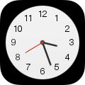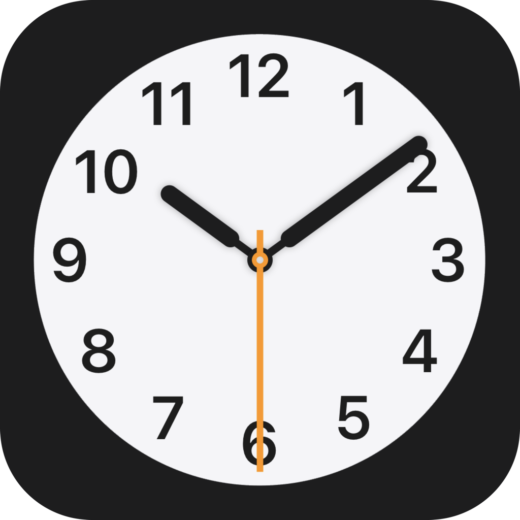 The icon was redesigned in iOS 26, with the clock filling the entire app icon shape, as well as simplified numbering (leaving only the 3, 6, 9, and 12) and the font being changed to SF Pro Rounded.