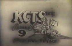 The "sunburst" in this logo was also used by Detroit and Houston PBS member stations WTVS and KUHT, respectively; by 1999, KCTS used Futura Bold for its branding, which it has done until 2024.