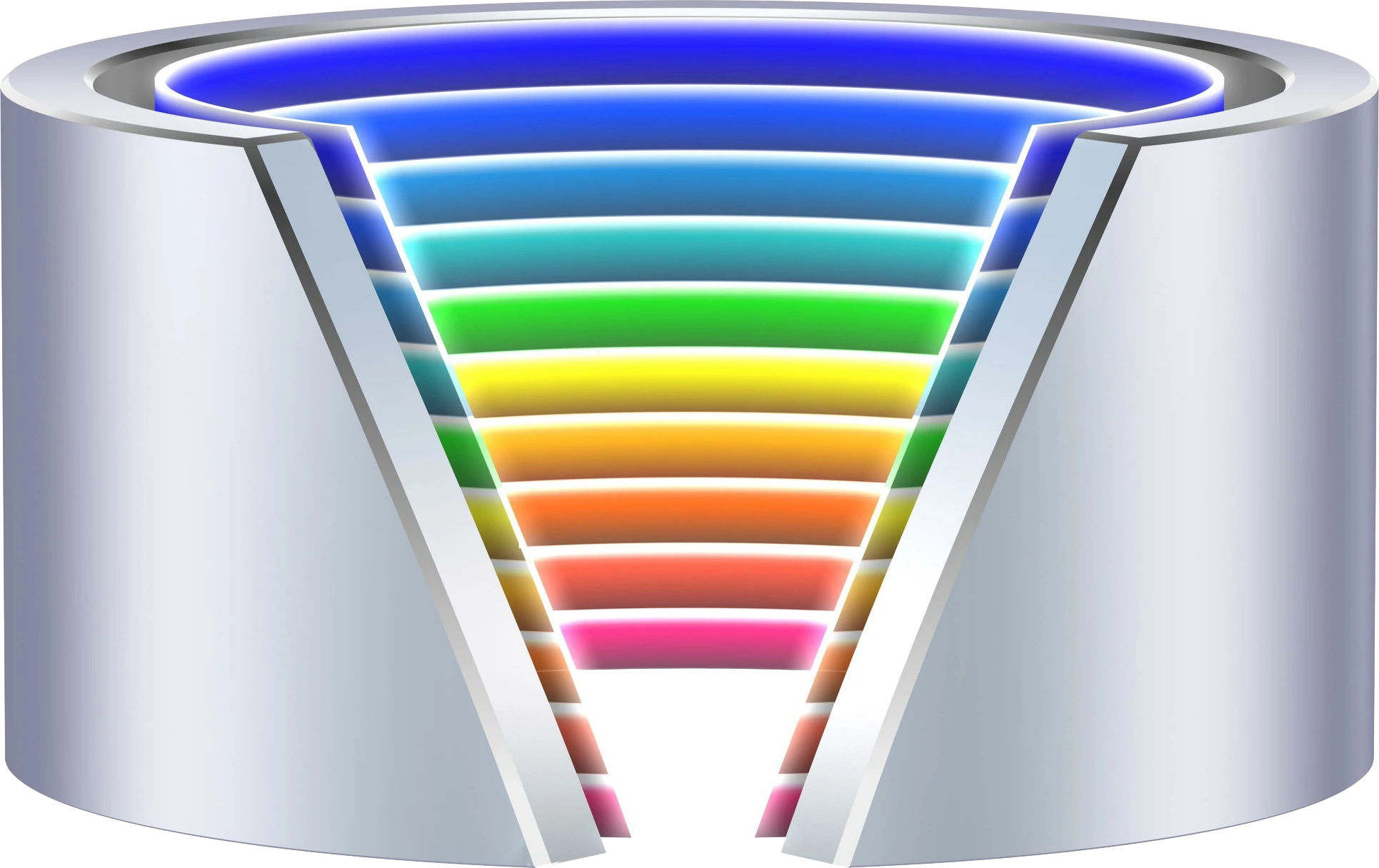 In 2012, Rede Vanguarda changed the logo after 9 years. The cylinder now is fully metallic, and its interior is formed by rainbow-colored scanlines. This change was made to match Rede Globo's 2008 logo.